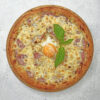 Белый соус, куриная ветчина, моцарелла, желток, базилик, оливковое масло. (Вес:560)