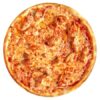 Пицца-соус, сыр Моцарелла, фарш, укроп, помидор, огурцы карнишоны, соус сырный, лук жареный