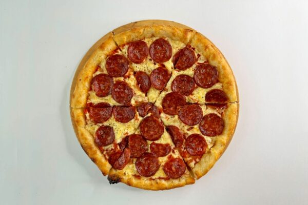 Красный соус, моцарелла, пепперони, базилик, оливковое масло. (Вес:550)